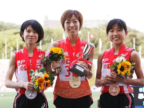 今は本当に夢のような気持ちです。レース中は自分の持っている力を精一杯出したいと思っていましたが、亜由子さんとワンツーを決めたい、という気持ちも大きかったですね。でも、亜由子さん任せでなく、二人で速いペースに持ち込みたいと思って走りました。スローペースになってラスト勝負にもつれると、私には不利になりますから。日本選手権に向けての海外遠征・合宿中も、社員の皆さんからの応援が励みになっていました。今日もスタンドの赤い応援団の方の存在が、本当に力になりましたね。