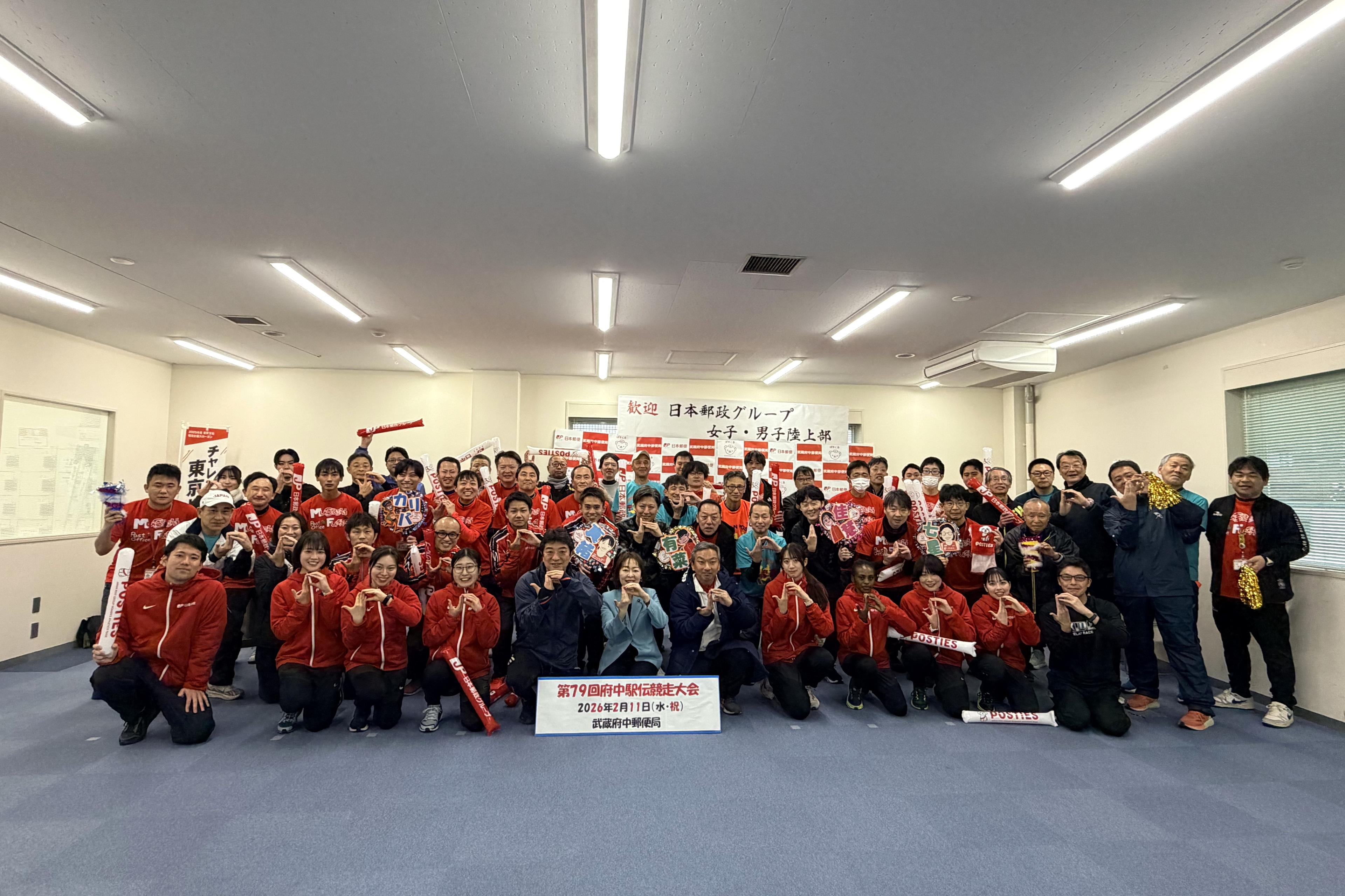 2026年2月11日(水曜日)、第79回府中駅伝大会が開催され、日本郵政グループ女子陸上部の和田 有菜選手、牛 佳慧選手、杉森 心音選手、カリバ カロライン選手、小暮 真緒選手、谷本 七星選手、OGの大西 ひかりさんがゲスト参加しました。