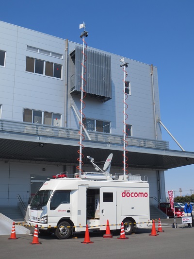 移動基地局車を群馬南郵便局駐車場に設置。